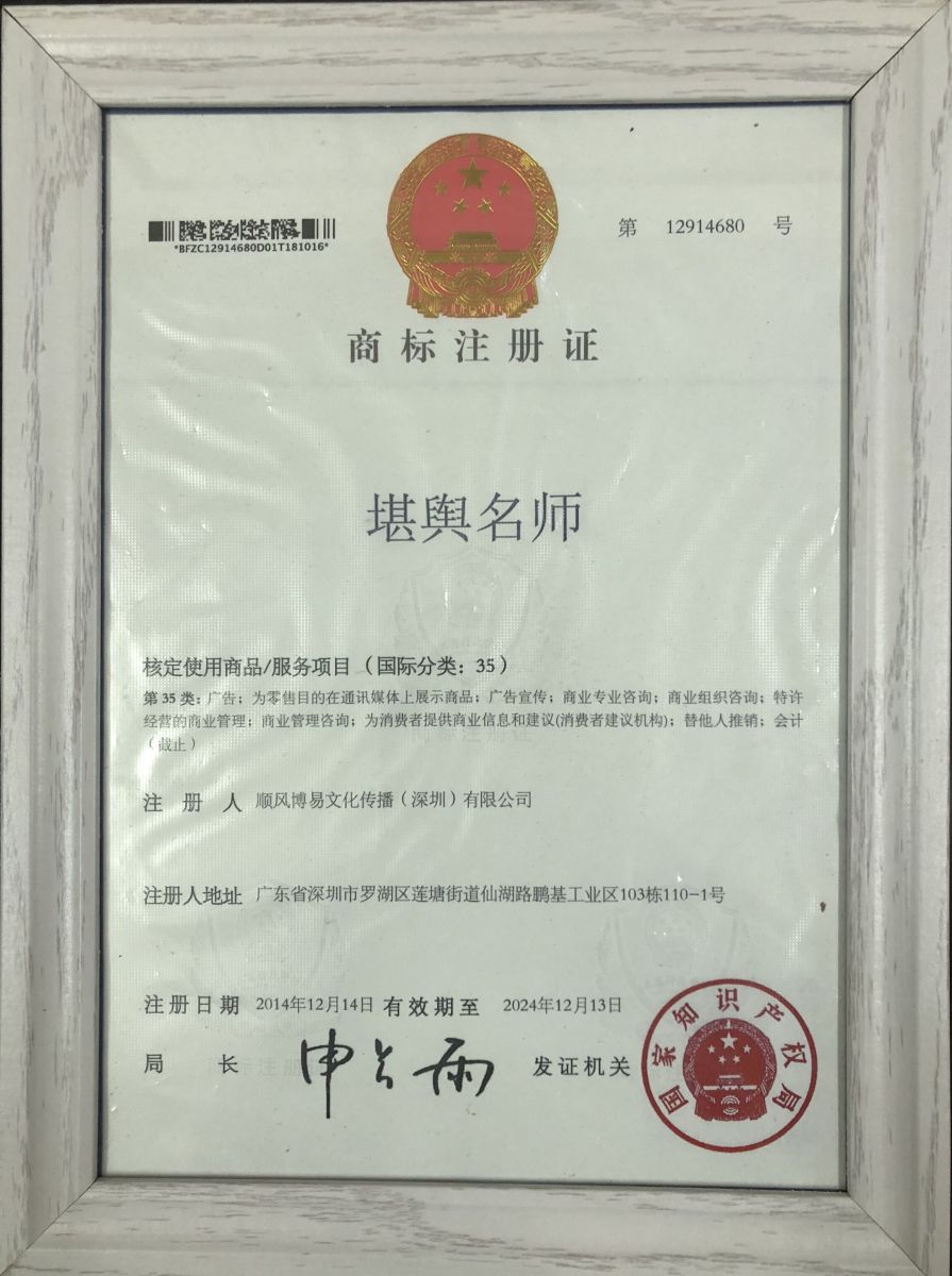 《堪舆名师》商标注册证